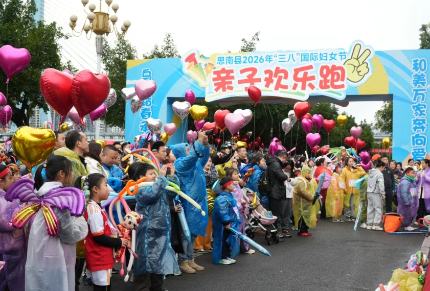 为庆祝第116个“三八”国际劳动妇女节,3月8日,思南县举办以“乌江踏春承文脉·和美万家奔向爱”为主题2026年庆“三八”亲子欢乐跑活动。来自全县各条战线的43支队伍、800个家庭、2000余名选手齐聚乌江之畔,以昂扬之姿奔赴春日之约,在欢声笑语中共度美好佳节。