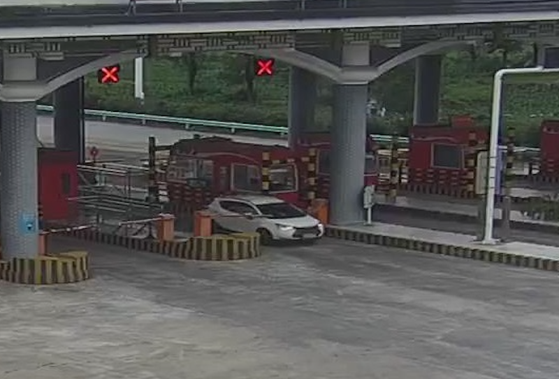 所以,他驾车行驶至达石板收费站时,便明目张胆的从ETC快速通道强行闯过栏杆驶离了高速。