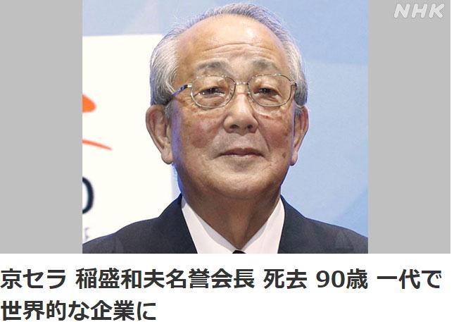 ▲据日本放送协会(NHK)30日报道,日本著名实业家、京瓷公司名誉会长稻盛和夫去世,终年90岁。稻盛和夫一生中创办了京瓷和第二电信两家世界500强企业。