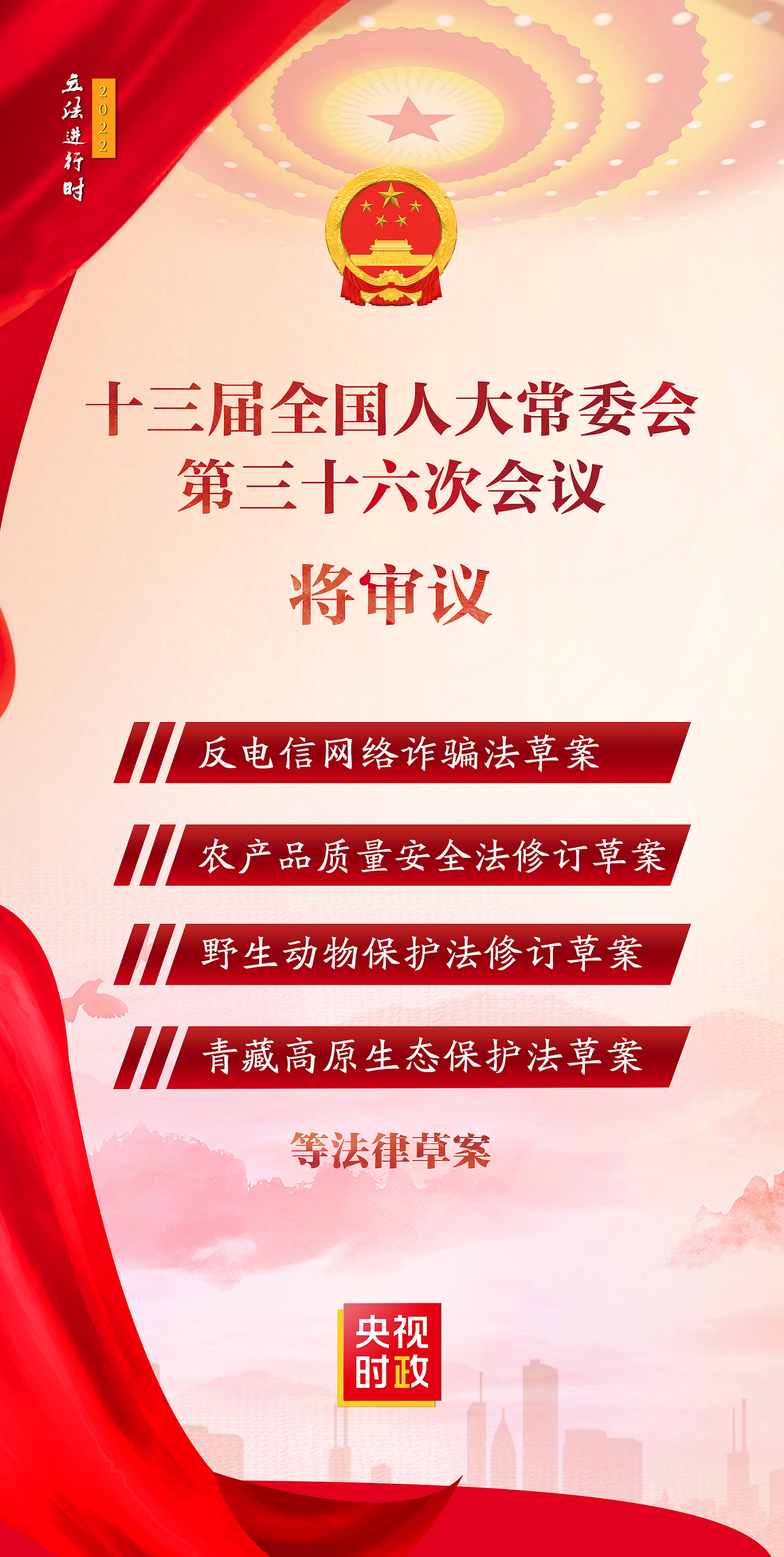 ▲十三届全国人大常委会第三十六次会议8月30日上午在京开幕。反电信网络诈骗法草案、农产品质量安全法修订草案、野生动物保护法修订草案等多件法律草案提请会议审议。