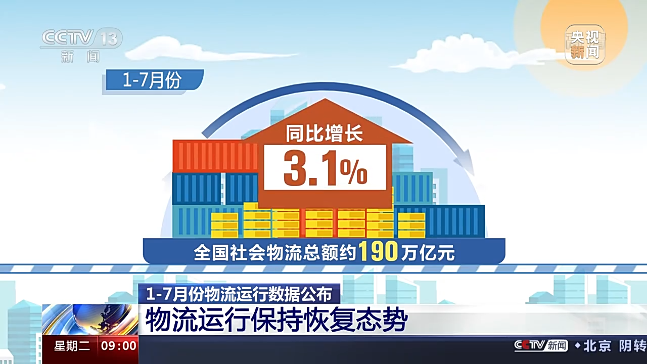 ▲中国物流与采购联合会30日公布今年1—7月份物流运行数据。总的来看,当前经济恢复和保通保畅政策效果明显,物流运行保持恢复态势。