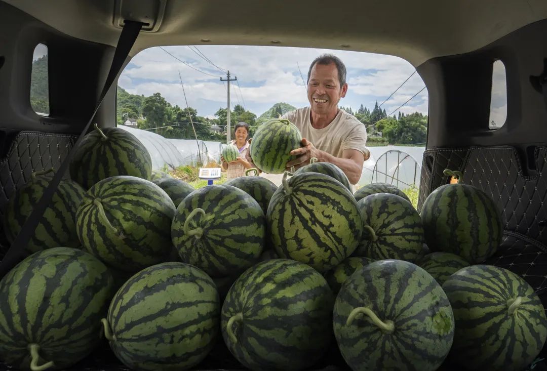 走进汇川区团泽镇高台坝区,只见茂盛的瓜藤掩映着一个个油亮亮、圆滚滚的大西瓜,村民们正在瓜田里忙着采摘西瓜、装框搬运,享受着“甜蜜经济”带来的幸福感。