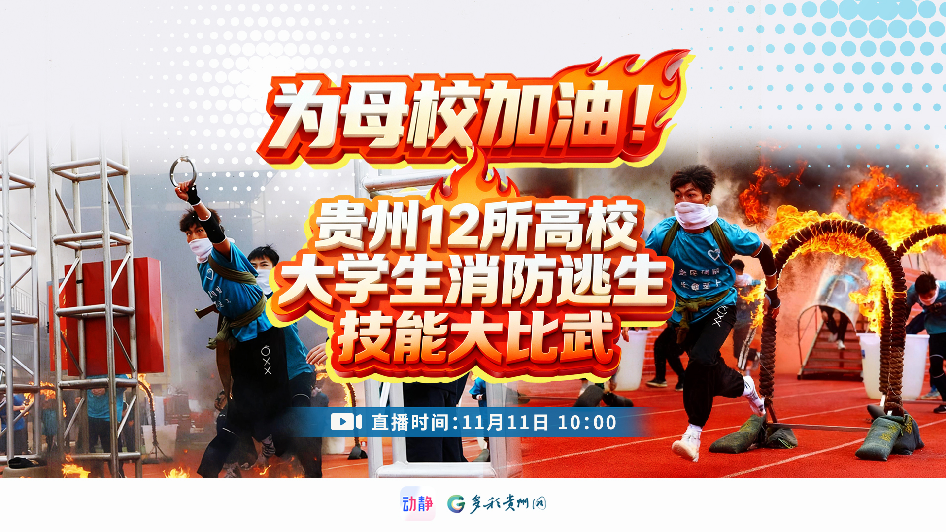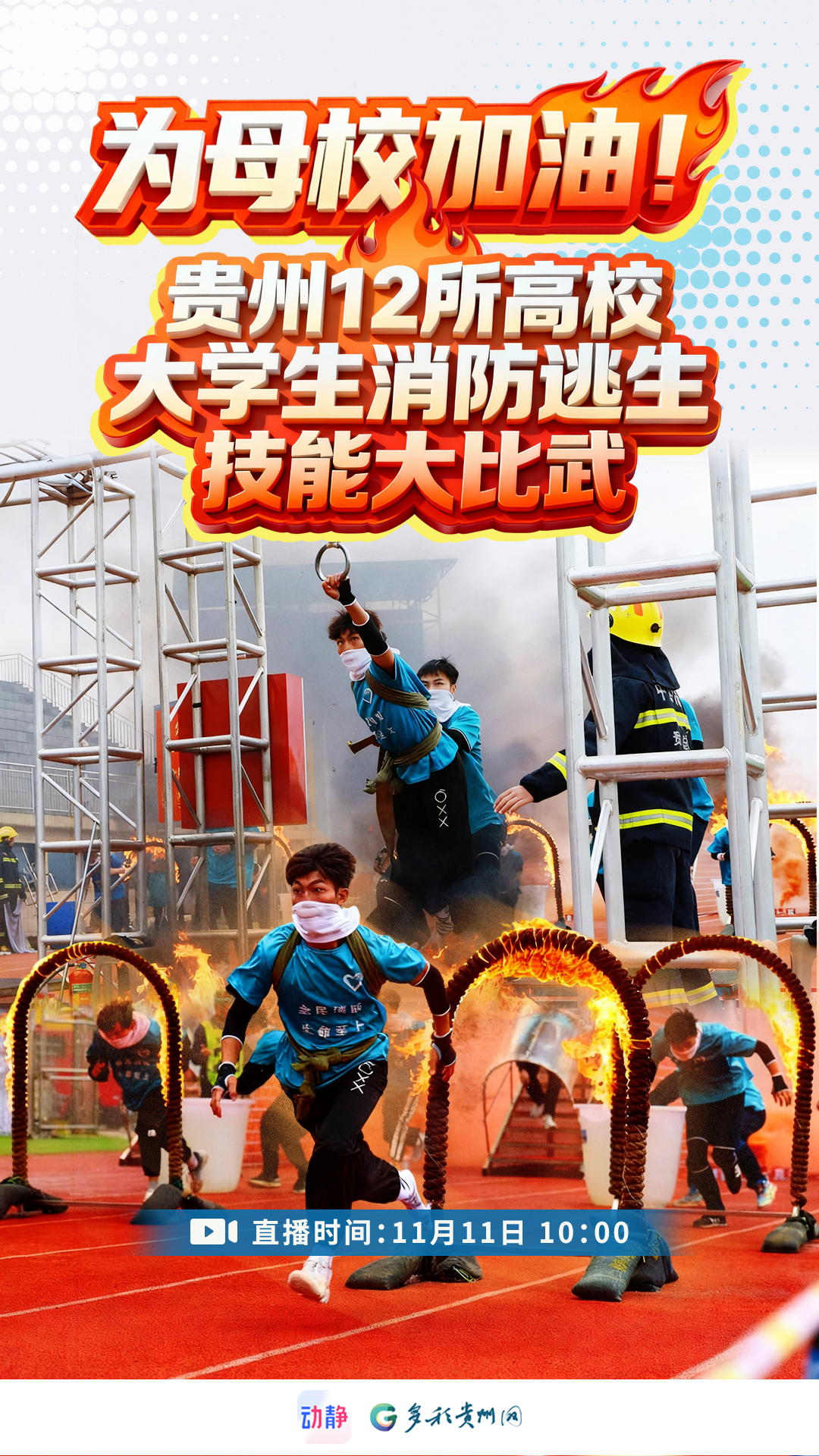直播预告 |今天10点,来为你母校加油!贵州12所高校大学生比拼消防逃生技能,动静全程直播