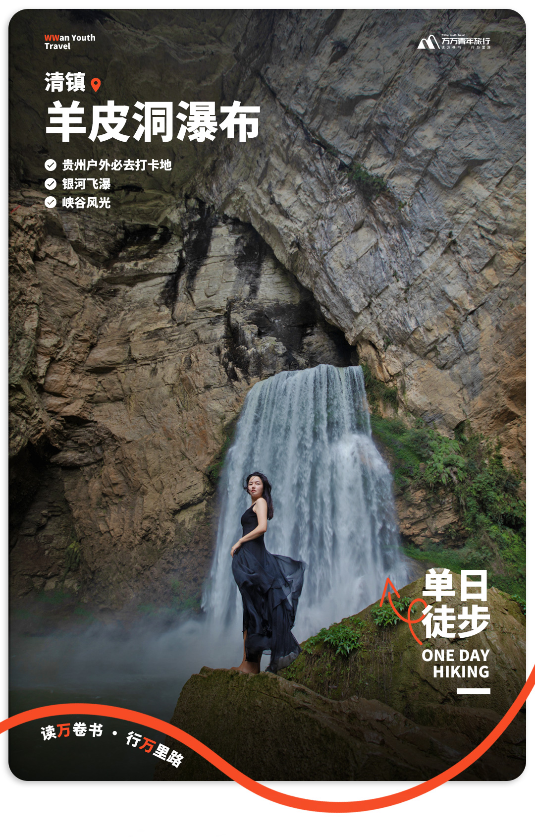 羊皮洞瀑布坐落于贵阳市清镇市木刻村,从贵阳市区出发驱车大约1.5小时。