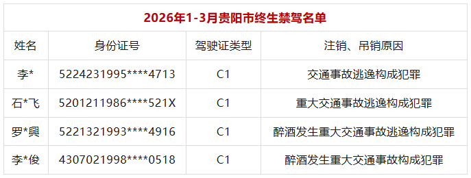 贵阳有4名驾驶人