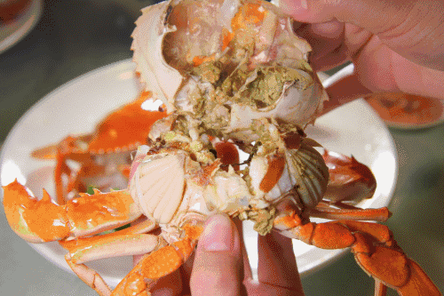 吃一口,螃蟹肉质饱满细嫩,香、鲜并存,浓香中透出蟹肉的鲜美,还带有丝丝清甜,葱香四溢,恨不得连蟹壳一起吃掉。