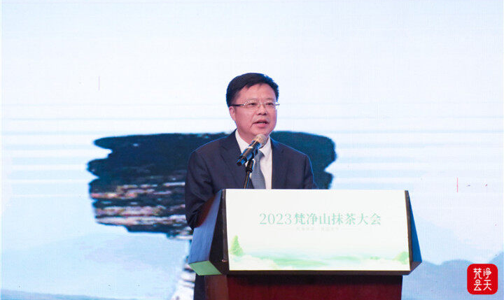陈康代表市生态茶产业专班和全市茶乡人民,向长期关心支持铜仁经济社会发展的各界人士表示衷心的感谢。他说,近年来,铜仁深入践行“绿水青山就是金山银山”的发展理念,按照“稳面积、优品种、提单产、强加工、树品牌、兴文化、促销售、增效益”的发展思路,突出梵净山茶“做强优势”,突出梵净抹茶“做大特色”,突出古树茶开发利用“做实高端”,深入推进生态茶产业发展提质增效、转型升级,举全市之力推进生态茶产业发展,基本形成从“基地到加工、市场、品牌、文化、旅游”全产业链发展,合力打造“中国抹茶之都”的浓厚氛围。印江、松桃等县先后被授予“中国名茶之乡”称号,石阡县被授予“中国苔茶之乡”称号,沿河土家族自治县被授予“中国古茶树之乡”称号,铜仁市被授予“中国抹茶之都”称号。铜仁率先在全国制定发布了抹茶全产业链地方标准,建成生态茶园基地153万亩,规模居全省第二位。未来,铜仁将以更加开放的胸襟、更加务实的作风、更加高效的服务,为广大客商营造良好的投资发展环境,携手发展,共创辉煌。