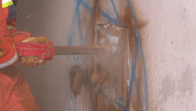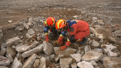 在部分倒塌建筑废墟内,指战员首先对建筑物进行安全评测,后进入内部进行人工搜救,在楼板下方发现被困人员后,救援小组对建筑物进行固定,利用凿岩机、钢筋速断器、混凝土破拆工具组等工具,破除一道道混凝土墙、钢筋铁网、坍塌楼板,顺利接近被困人员所在位置,并成功将被困人员救出。