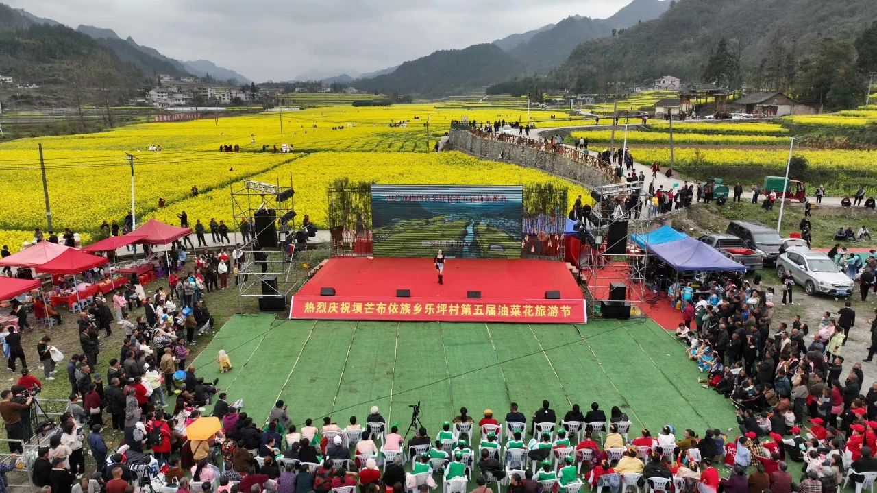 3月17日,以“诗情田园麻江 画意梦境乐坪”为主题的坝芒乡乐坪村第五届油菜花文化旅游节开幕。千亩油菜花海迎春绽放,满眼金黄,游客走进花海,共赴一场花田盛宴。县委常委、副县长邵士昌宣布开幕,副县长吴建英致辞。