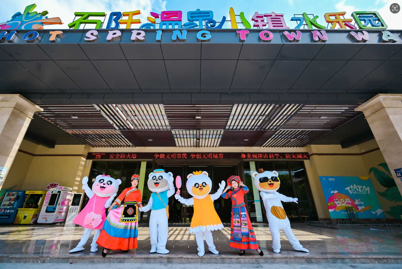 石阡佛顶山温泉小镇水乐园开园时间恰逢端午佳节前夕,活动现场景区IP形象汤汤熊一家为现场嘉宾和游客送上了热烈四射的超凡家庭舞,开园仪式在阵阵掌声中隆重开场。