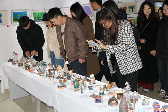 志愿者们欣赏儿童制作的陶艺