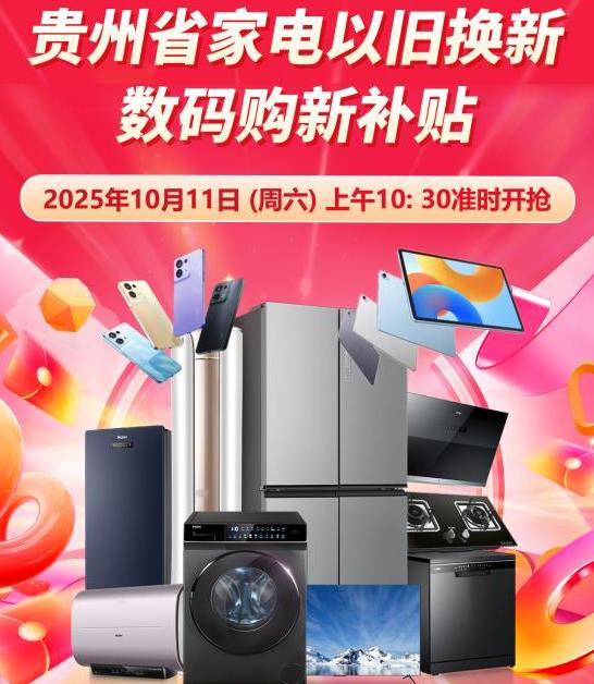 贵州省新一轮家电以旧换新、数码购新补贴活动将于10月11日上午10:30在一码贵州平台正式开抢。本轮活动对补贴范围作出优化调整,保留12类家电品类及数码品类的补贴申领通道,停止实施扩围的消毒柜、冷柜、取暖器(暖气片)、电暖炉(桌)等33类家电补贴申领。温馨提示,领取到消费券后请及时使用,消费券7天内有效。