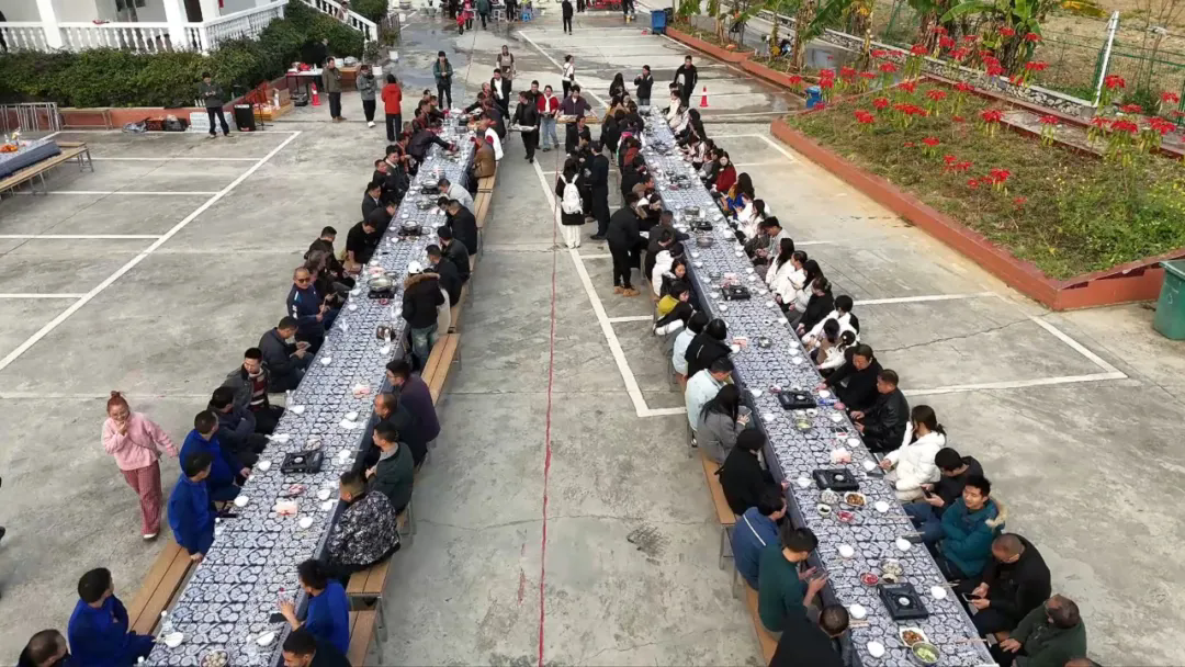 浓浓的烟火气里,坝盘村的长桌刨汤宴开席啦!村民们围坐在一起,吃着热乎的刨汤肉,大家你一言我一语地合计着来年的好路子,这热闹的场景,就是和美乡村最美的模样。