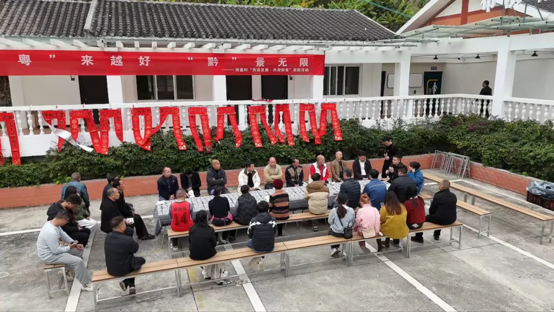 近日,黔西南州安龙县万峰湖镇坝盘村以“‘粤’来越好、‘黔’景无限”为主题举办迎新系列活动,通过会商、观演、长桌宴等丰富多样的形式,村民们在欢声笑语中共谋发展、喜迎新春。