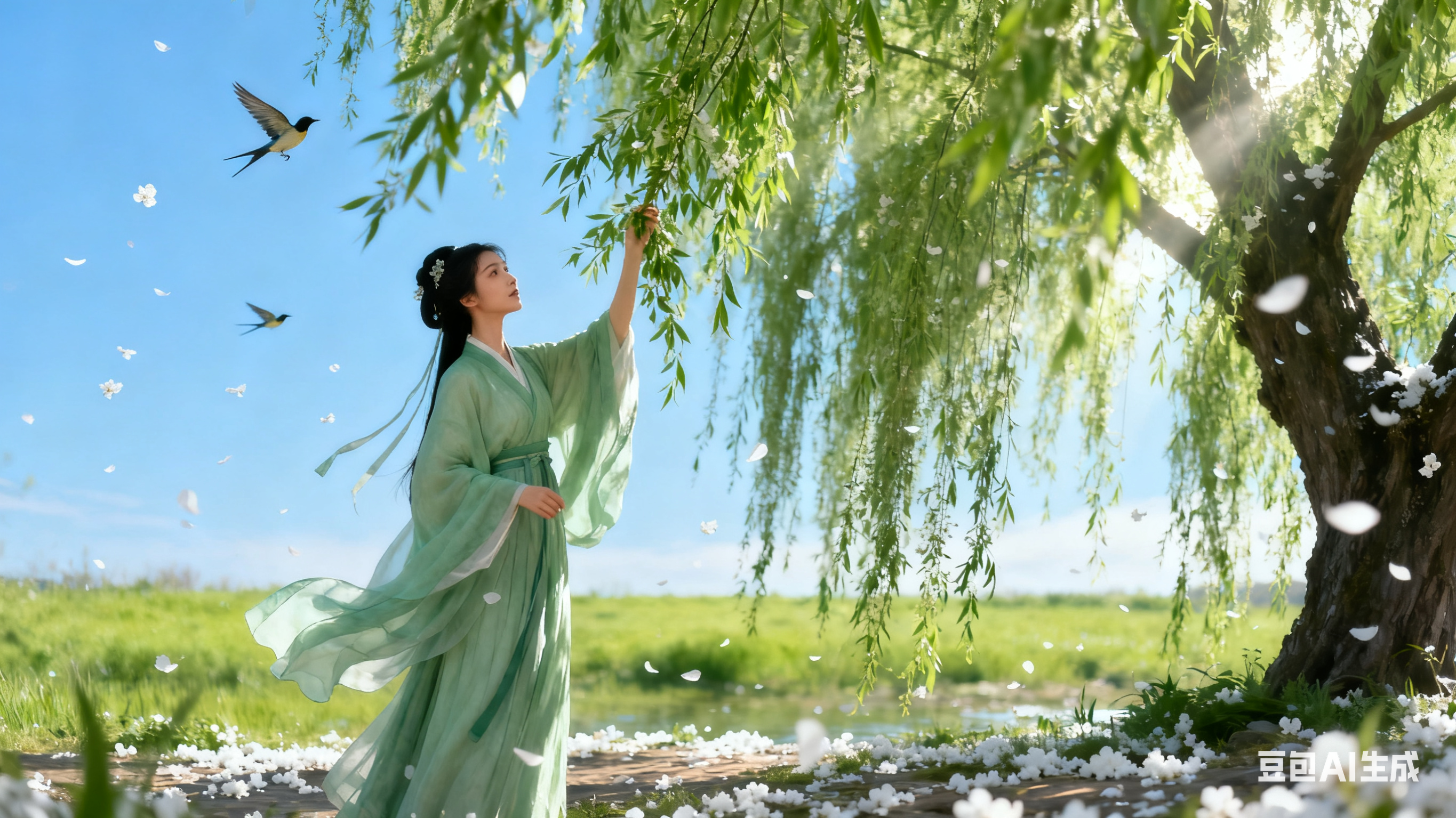 杨柳代表着离别与思念,意象渊源来自《诗经·小雅·采薇》之“昔我往矣,杨柳依依”的经典表达。汉代,折柳赠别的习俗形成,“灞桥折柳”成为送别仪式中不可或缺的环节。在《月节折杨柳歌》中,这一传统意象被赋予了更为丰富的情感内涵,虽时令变化、景物更迭,但“折杨柳”的动作始终不变,这种不变恰恰暗示了生命的延续与情感的恒常。