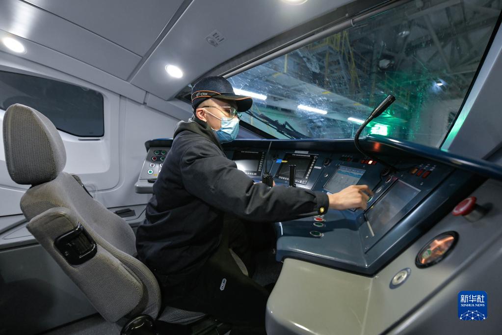 1月6日晚,动车司机在贵阳北动车运用所对动车组列车进行功能测试。
