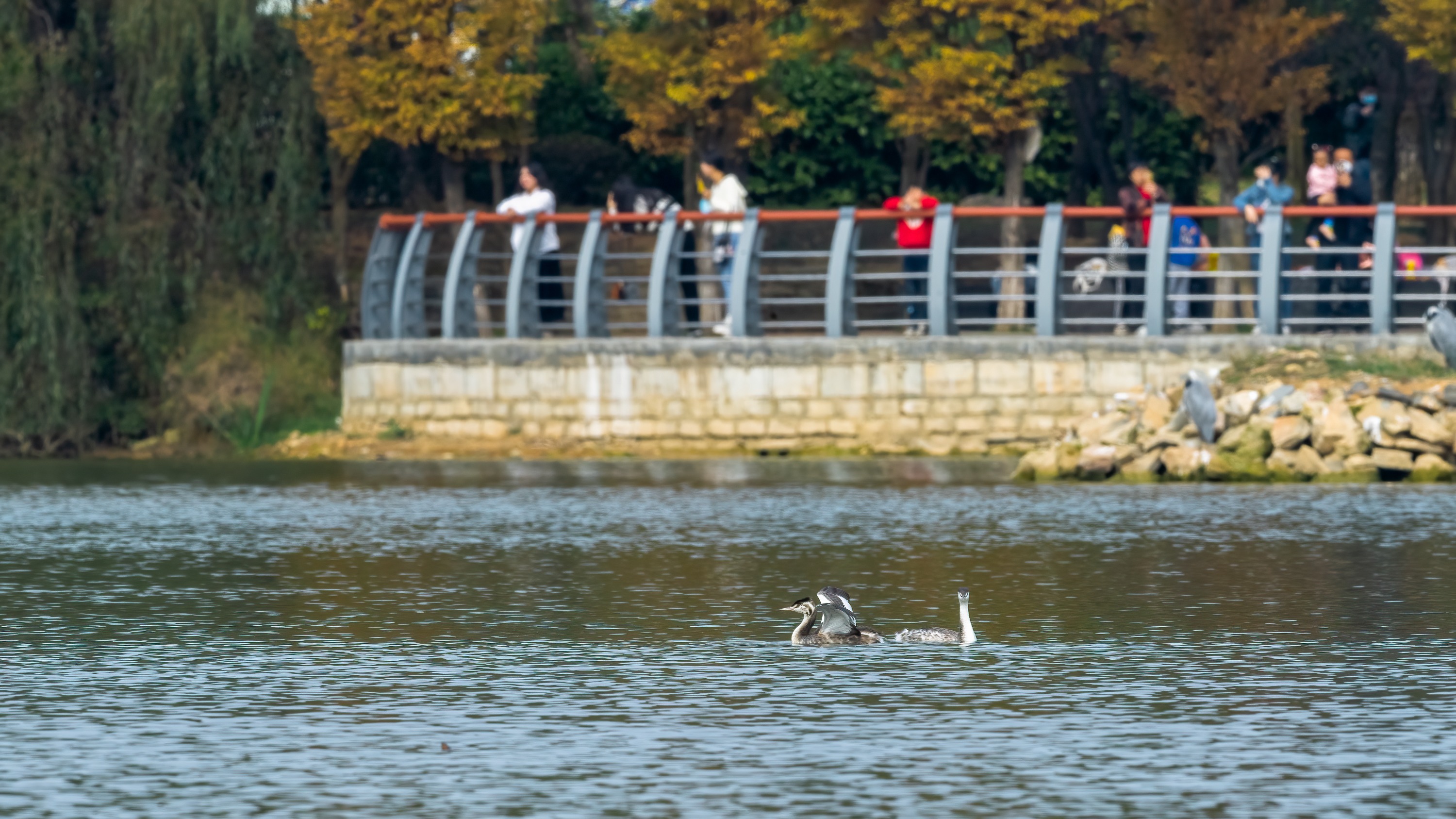 近日,贵阳市观山湖公园迎来一群南迁的凤头鸊鷉,它们在此驻足停留,吸引众多市民前去观赏、拍摄。据了解,这是贵阳市首次发现凤头鸊鷉。