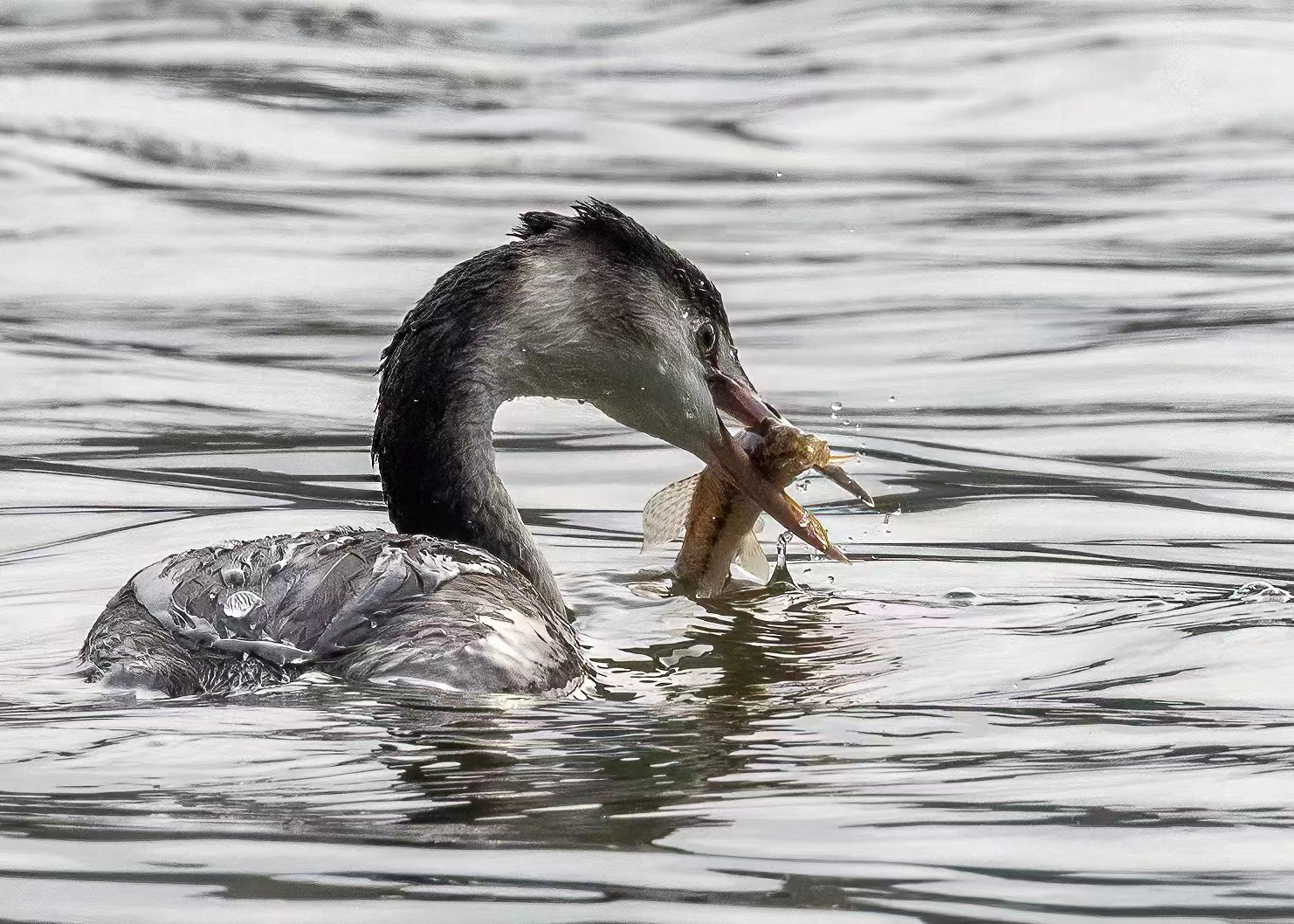 南迁的凤头鸊鷉在贵阳观山湖逗留