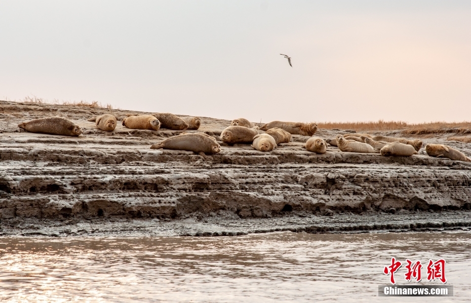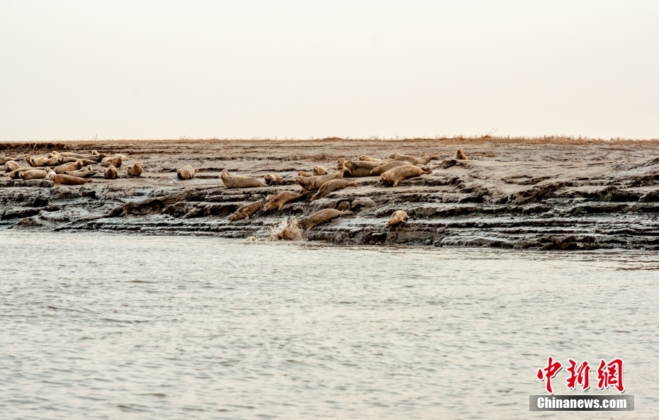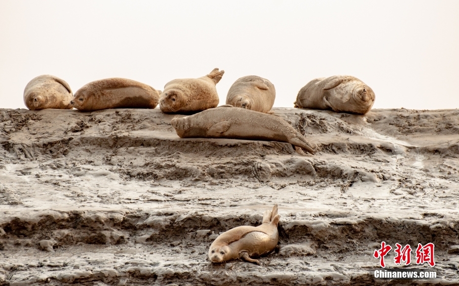 数百只西太平洋斑海豹带幼崽聚集栖息辽宁盘锦