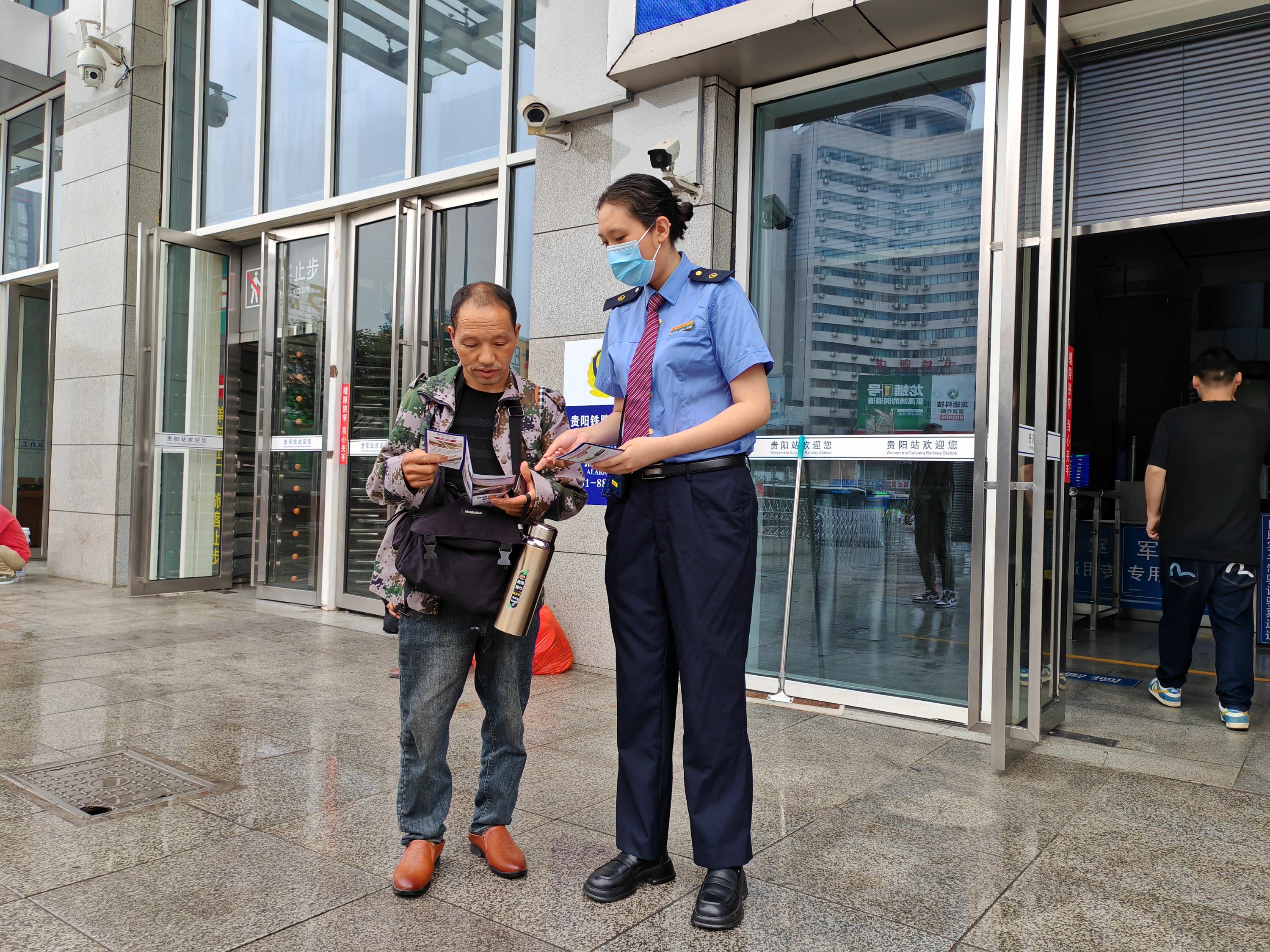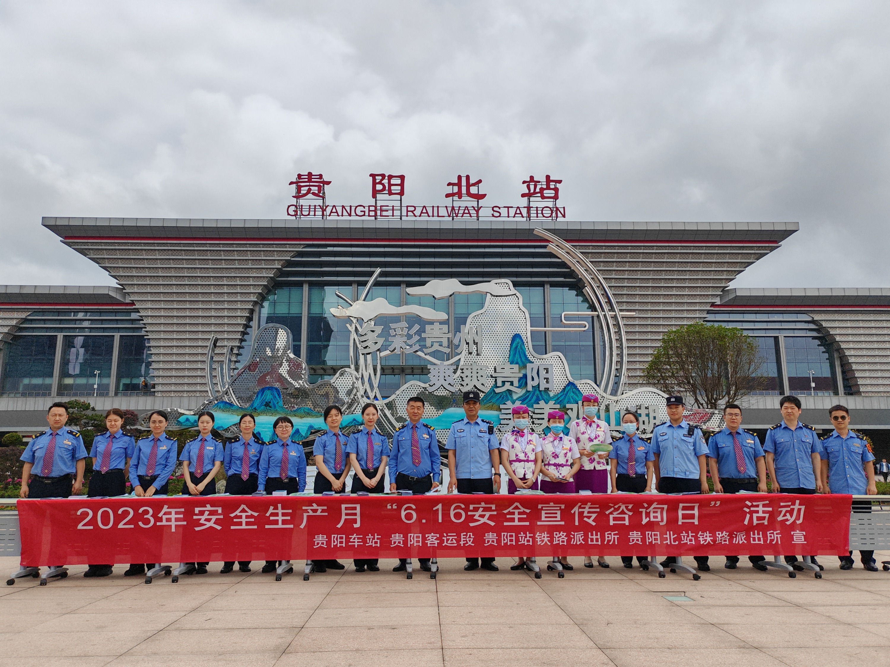 6月16日是“全国安全宣传咨询日”。当天上午,贵阳车站联合站区派出所、贵阳客运段等单位在贵阳北站、贵阳火车站开展“安全宣传咨询日”集中宣传活动。