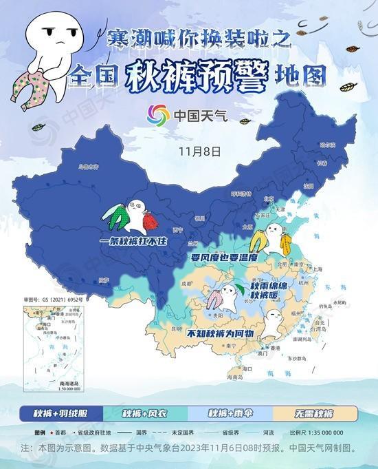 寒潮喊你换装啦!全国秋裤预警地图出炉 秋裤分割线已跨过长江
