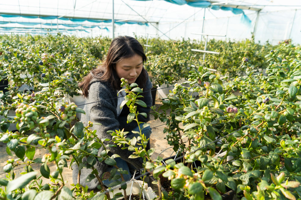 水肥补给进度太慢、蓝莓营养不足、温度湿度低于设定值……一看到手机上的监测数据异常,“农田管家”梅伟总是会迅速赶到现场,熟练地调整大棚里的设备。作为刚刚接触农业的“90后”新农人,在现代科技的帮助下,她一人就能管理约五十亩连片大棚、四万余盆茁壮生长的蓝莓。