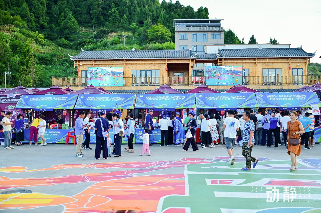大胆创新的贵阳民族元素风筝文创、古树茶,美味可口的安顺关岭酸汤牛肉、地域特色浓厚的黔东南“村BA”文创、古老精致的黔南水仙马尾绣……7月23日下午,一场特殊的“首站多程”联合营销推广活动在“村BA”故乡台盘村上演,开启了贵阳、安顺、黔东南、黔南四地联合营销推广新模式。