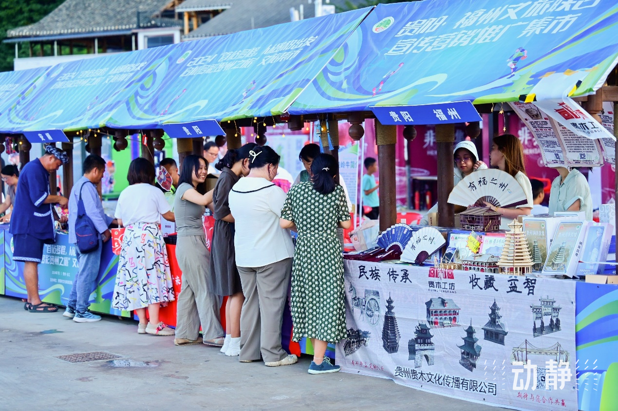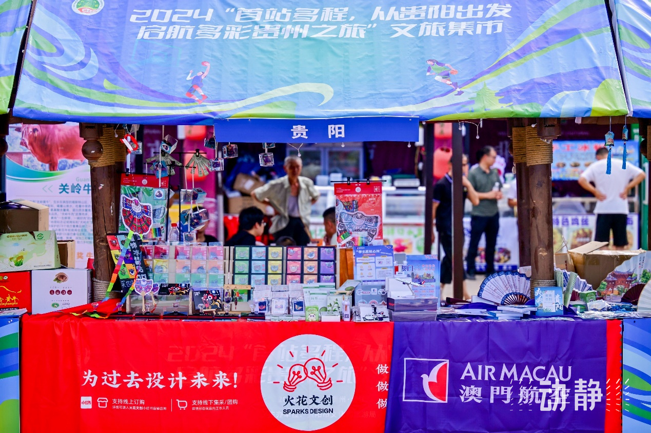 此次2024“首站多程,从贵阳出发,启航多彩贵州之旅”文旅集市举办地在台盘村文化体育交流中心,集中展现了贵阳、安顺、黔东南、黔南等地的特色旅游产品、手工艺品、非遗及特色美食。文旅集市上,游客不仅可以购买到“人生就该有追求”的“村BA”系列文创,具有民族特色的银饰、蜡染,最具代表性的贵州景点木雕制品外,还可以品尝到关岭牛肉制品、三穗鸭等贵州特产美食……琳琅满目的特色旅游产品让游客在品味贵州多元文化的同时,也享受了一场视觉与味觉的双重盛宴。