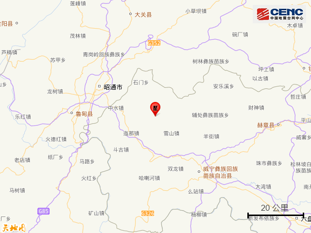 据了解,本次地震震中周边5公里内涉及中寨、大寨村、中心村等多个村庄,20公里内覆盖龙街镇、雪山镇、黑土河镇等乡镇。震中距威宁自治县40公里,距云南昭通市36公里,距昆明市271公里,周边多地居民反映有明显震感,其中震中附近区域震感强烈。震中5公里范围内平均海拔约2161米,地形以山地为主。