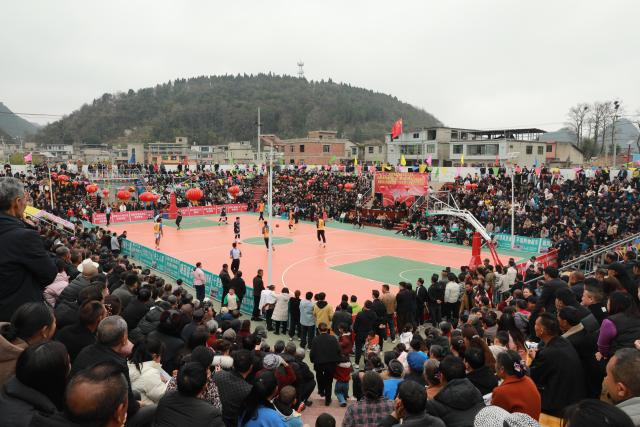 仪式在《义勇军进行曲》中拉开帷幕,运动员、裁判员代表先后宣誓,贵阳市体育局党组成员、副局长黄俊宣布比赛启动。启动仪式后,随着裁判员一声哨响,茅草玄武岩代表队与众兴工程代表队展开首场精彩对决。双方你争我夺、你攻我守,抢断、运球、长传、投篮一气呵成,精准的三分球、精彩的扣篮动作,将顽强拼搏、团结协作的体育精神展现得淋漓尽致。最终,茅草玄武岩代表队以 90:70 战胜众兴工程代表队。比赛过程高潮迭起、扣人心弦,吸引周边 5000 余名村民前来观赛,加油声、欢呼声此起彼伏,热烈的赛事氛围弥漫整个乡村。