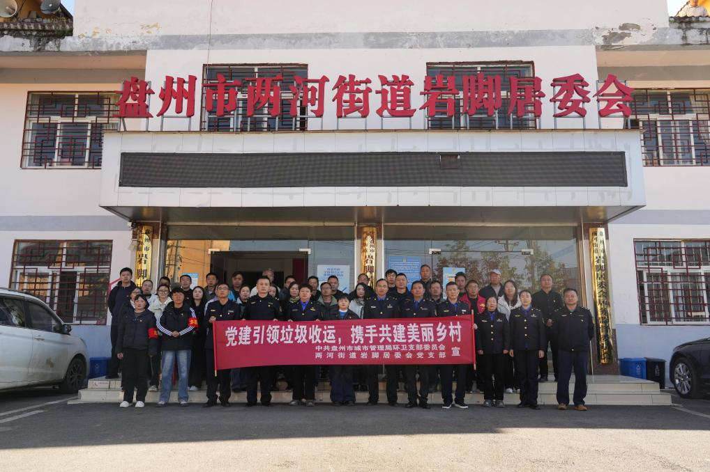近日,盘州市一场别开生面的联合主题党日活动在两河街道岩脚居委会生动展开。该活动由中共盘州市城市管理局环卫支部委员会与两河街道岩脚居委会党支部共同策划的“党建引领垃圾收运 携手共建美丽乡村”活动,不仅是理论学习的课堂、实践行动的现场,更是盘州市探索党建引领基层治理、推动农村人居环境整治提质增效的一次市级层面的生动示范。活动将政治理论学习、政策方案解读、基层经验分享与一线实践服务深度融合,彰显了盘州市以高质量党建引领美丽乡村建设的坚定决心与创新路径。
