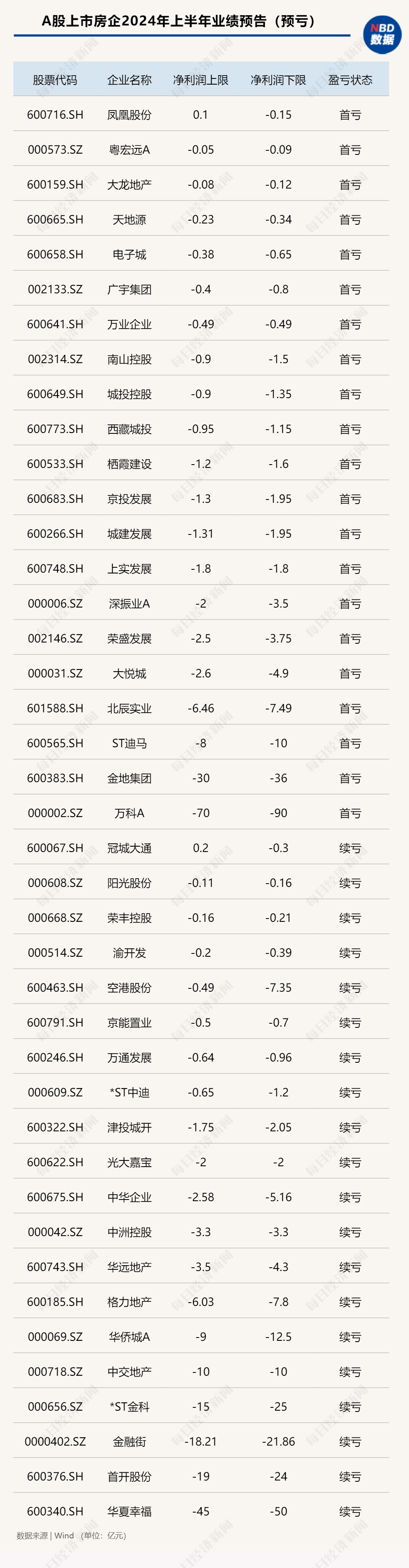 A股61家上市房企预告上半年业绩:20家预喜、近七成预亏 专家:下半年房企销售降幅将缩小