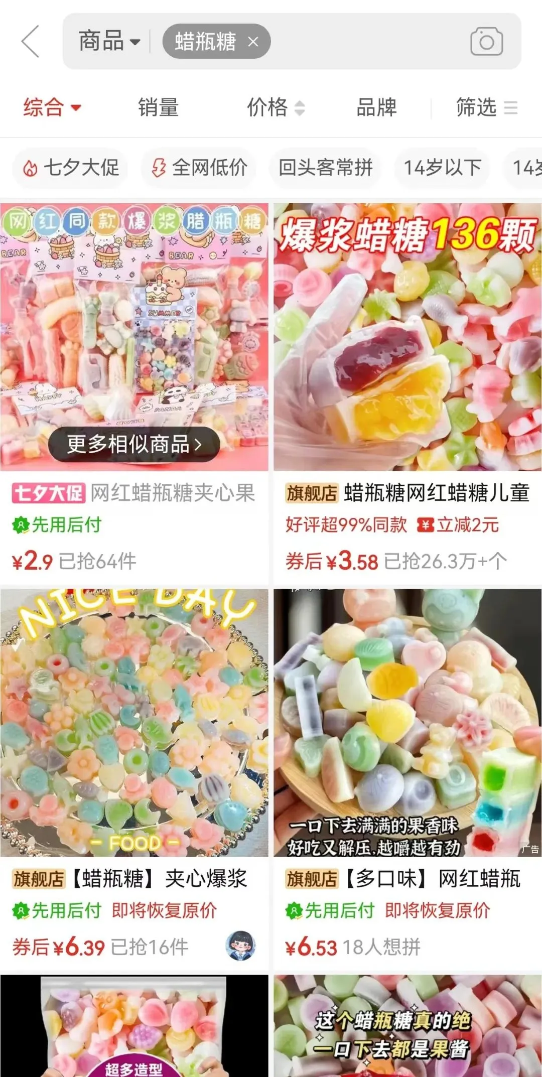 蜡瓶糖在青少年中非常火爆,短视频平台上有很多青少年在直播带货,甚至有儿童“出镜带货”,介绍蜡瓶糖有多好吃,号称虽然蜂蜡不能吞咽,但“嚼一嚼,吸一吸,再吐出来”很有趣。