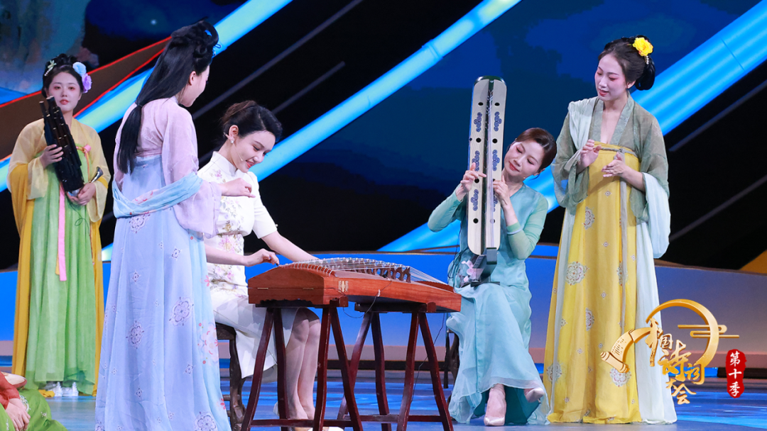 节目于“情景共答”环节中,匠心复原了五代十国时南唐周文矩的名画《合乐图》中的宫廷乐班。古筝清婉,玉笙悠扬……千年清音再度响起,不仅重现了五代时期宫廷雅乐的礼制与风貌,更以生动的视听语言,完成了一场跨越时空的文明对话。