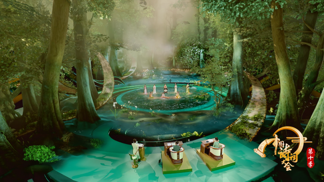 “独坐幽篁里,弹琴复长啸” ,千人团齐诵出本集节目主题——千秋传雅韵,以诗词为舟,以雅趣为帆,开启一场融合传统与现代的文化之旅,引领观众深入探寻中华美学。