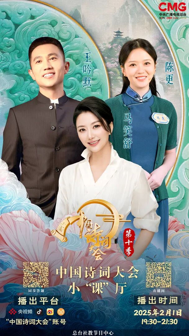 📢 开播提醒!✨ 诗意邀约《中国诗词大会》第十季「小 “课” 厅」伴随式直播⏰ 2月1日19:30准时开播!海量好礼送不停🎁以诗会友,闲聊畅谈。 用诗词点亮好心情!“中国诗词大会”账号全平台同步直播,静待君至!