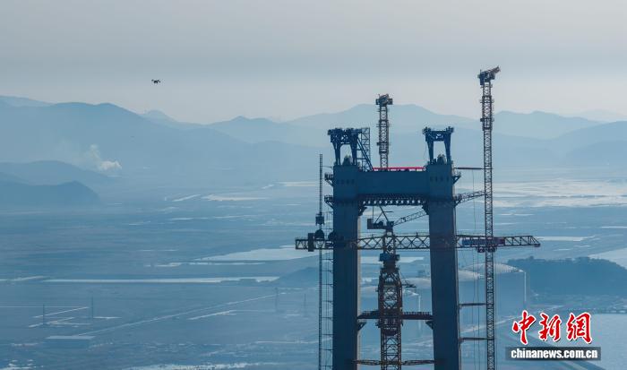世界最大跨度单跨吊钢箱梁悬索桥先导索成功过海。盛锡浩 摄