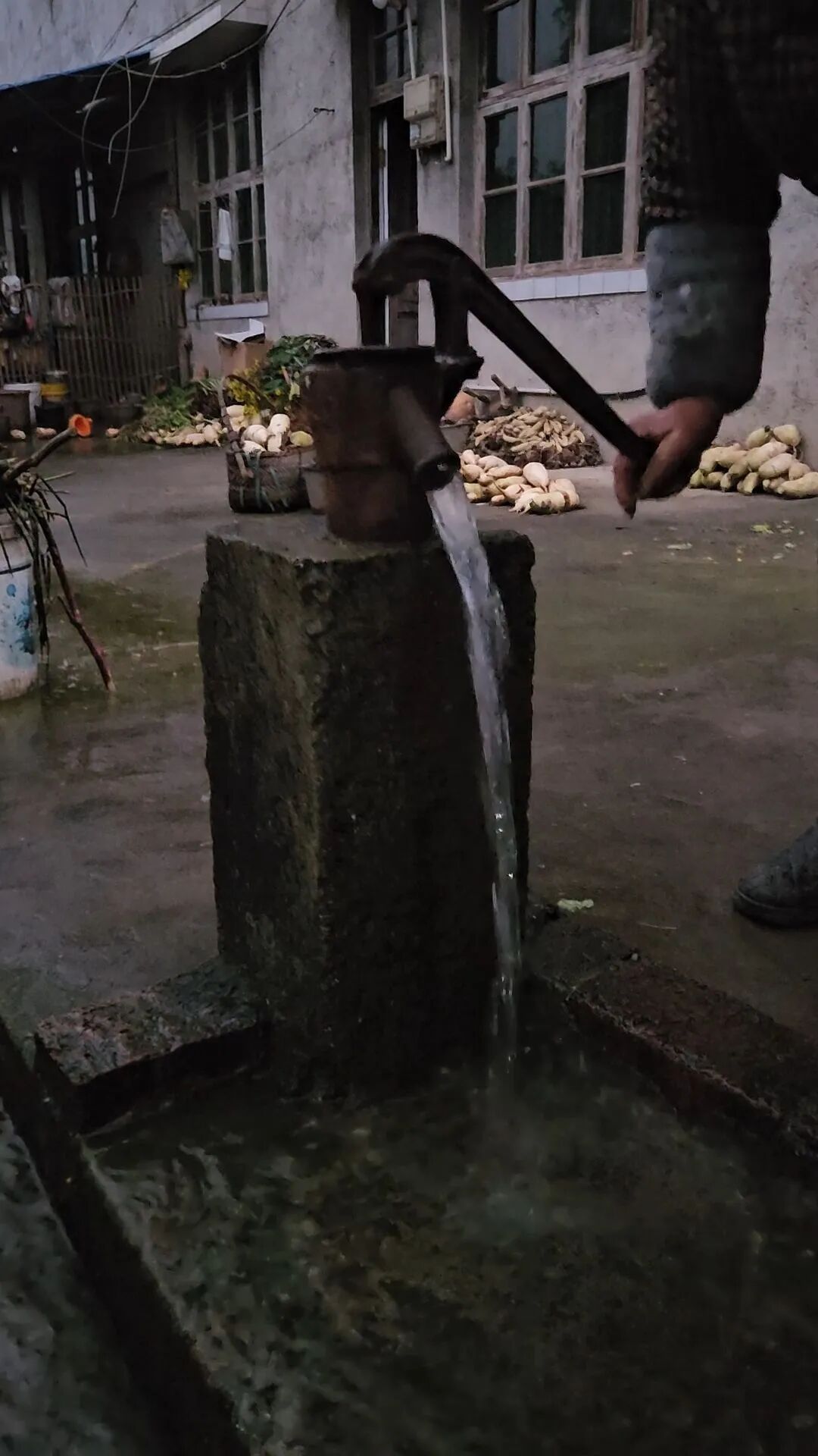 潇湘晨报·晨视频记者来到刘先生姑妈家,她自家庭院里养着约20只鸭子,院子里有一个摇井,连接地下水,“有时候会用摇井出来的地下水喂鸭,流出的水会通过地面上的水沟流向鸭子喂养处。”