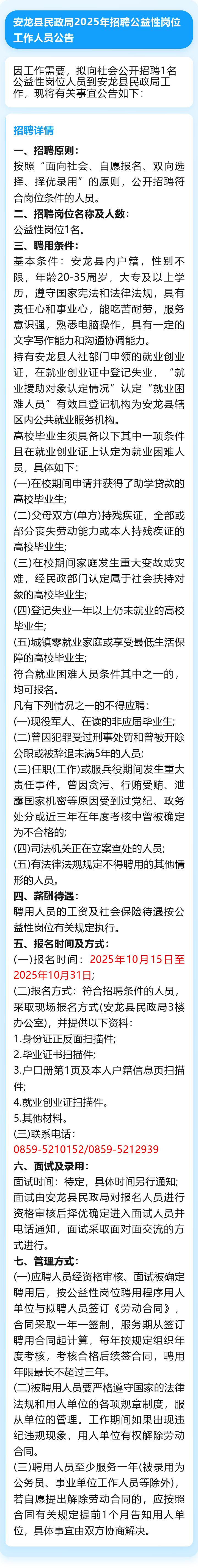 【政府机关】民政局招聘!报名截止时间:2025年10月31日!