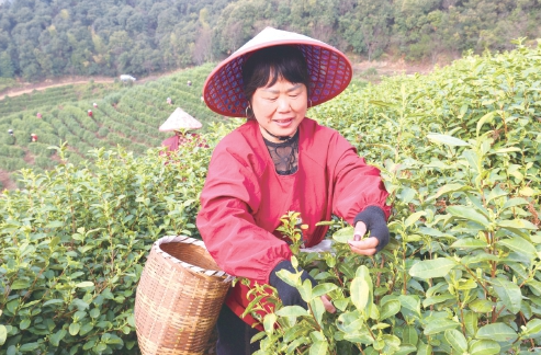 3月15日,采茶工在浙江省湖州市德清县阜溪街道民进村双丰有机茶园采摘春茶。近日,各地茶树春芽萌发,茶农忙着采摘今年的头春茶供应市场。谢尚国 摄
