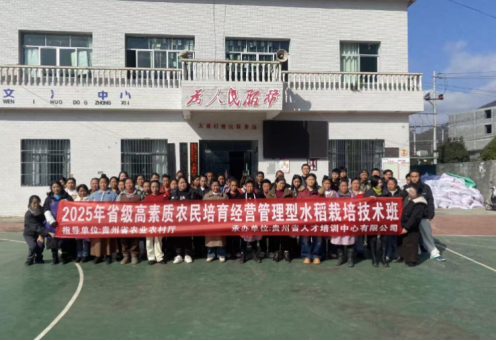 纳雍沃土稻飘香,精技赋能促振兴。近日,由贵州省农业农村厅指导、贵州省农业发展集团有限责任公司下属三级子公司贵州省人才培训中心有限公司(以下简称人才培训中心)承办的2025年高素质农民培育经营管理型水稻栽培技术班,在大寨村村委会会议室圆满落幕。50名种植大户、合作社骨干、家庭农场主及新型农业经营主体从业者,历经10天80学时“政策领航+技术攻坚+实景实战”的沉浸式培育,顺利结业,携水稻全周期标准化栽培、绿色防控、机械化作业及产后加工储藏等硬核本领,将成为守护粮食安全、推动水稻产业高质量发展的“稻业新农人”。