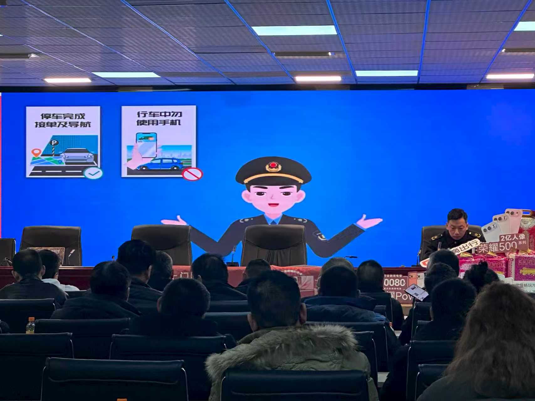 培训期间,广大驾驶员朋友还集中观看了支队精心制作的网约车安全运营教育视频。视频以动画演示解读的方式,系统梳理了网约车运营全流程的安全风险点和防范措施,内容贴合行业实际、针对性极强,让驾驶员们直观清晰地认识到安全运营的重要性和必要性,进一步夯实了安全驾驶的思想根基。