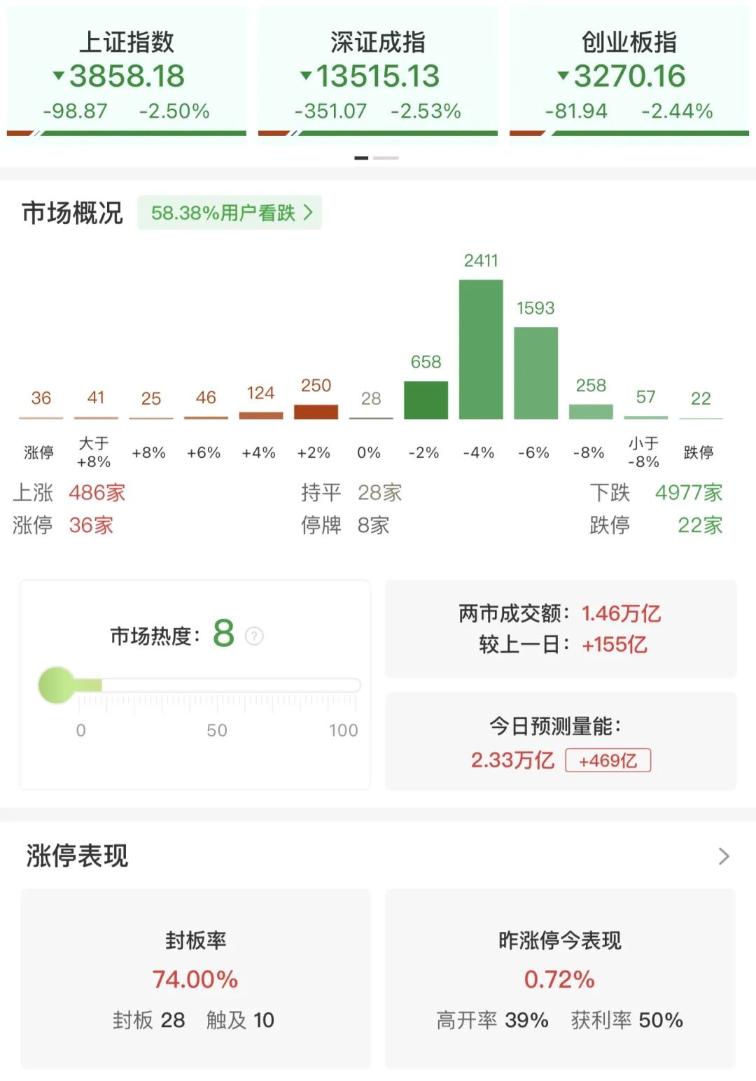 沪指跌超2%失守3900点,全市场近5000只个股下挫