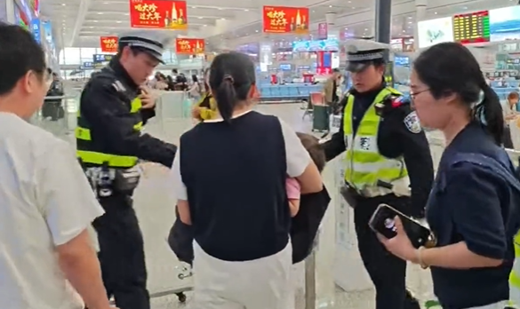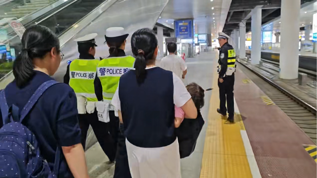 17时56分,在北站派出所民警的配合下,民警顺利抵达站台,迅速找到孩子及家属,第一时间开启护送模式。