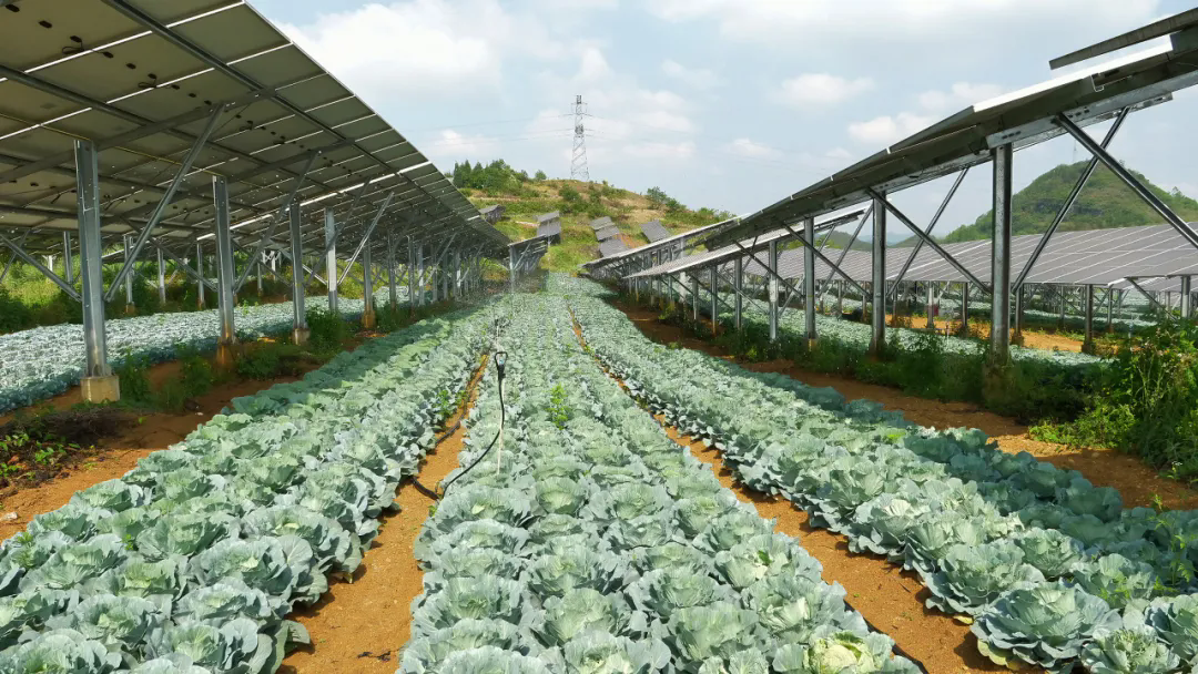 围绕“双碳”目标,安龙县依靠创新融合,充分释放光能资源潜力,通过招商引资加速光伏产业集聚,推动能源结构低碳转型。光伏电站的建设不仅盘活了荒山荒地,还通过土地流转、基建用工、日常管护等渠道,为周边村民开辟了多元增收路径。此外,深化“农光互补”模式,光伏板下特色农作物的种植、管护、采收等环节,让村民在“家门口”实现就业增收。