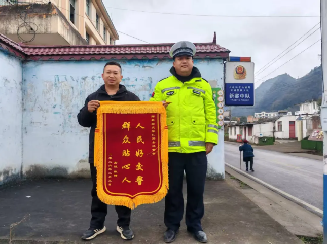 六盘水交警破获一起肇事逃逸案,群众点赞赠锦旗。