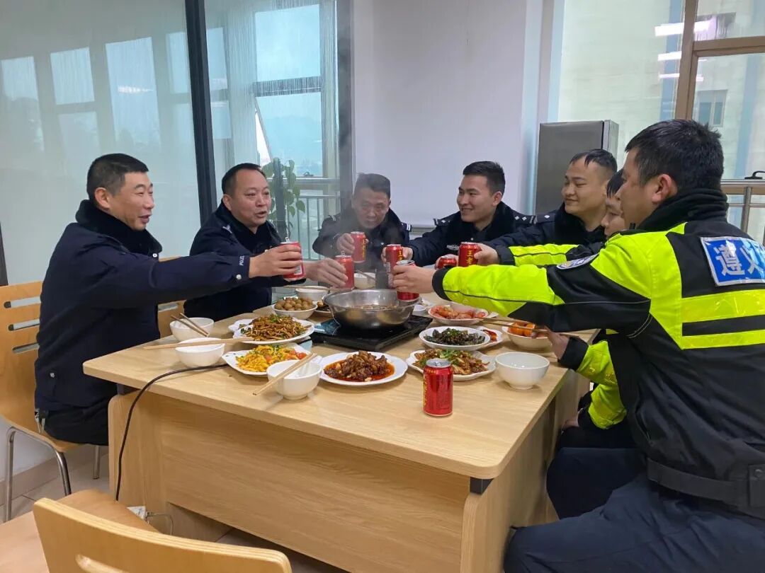 公安交警值班室里特别的“年夜饭”,既吃出了年的味道,也吃出了“忠诚”与“责任”的味道。