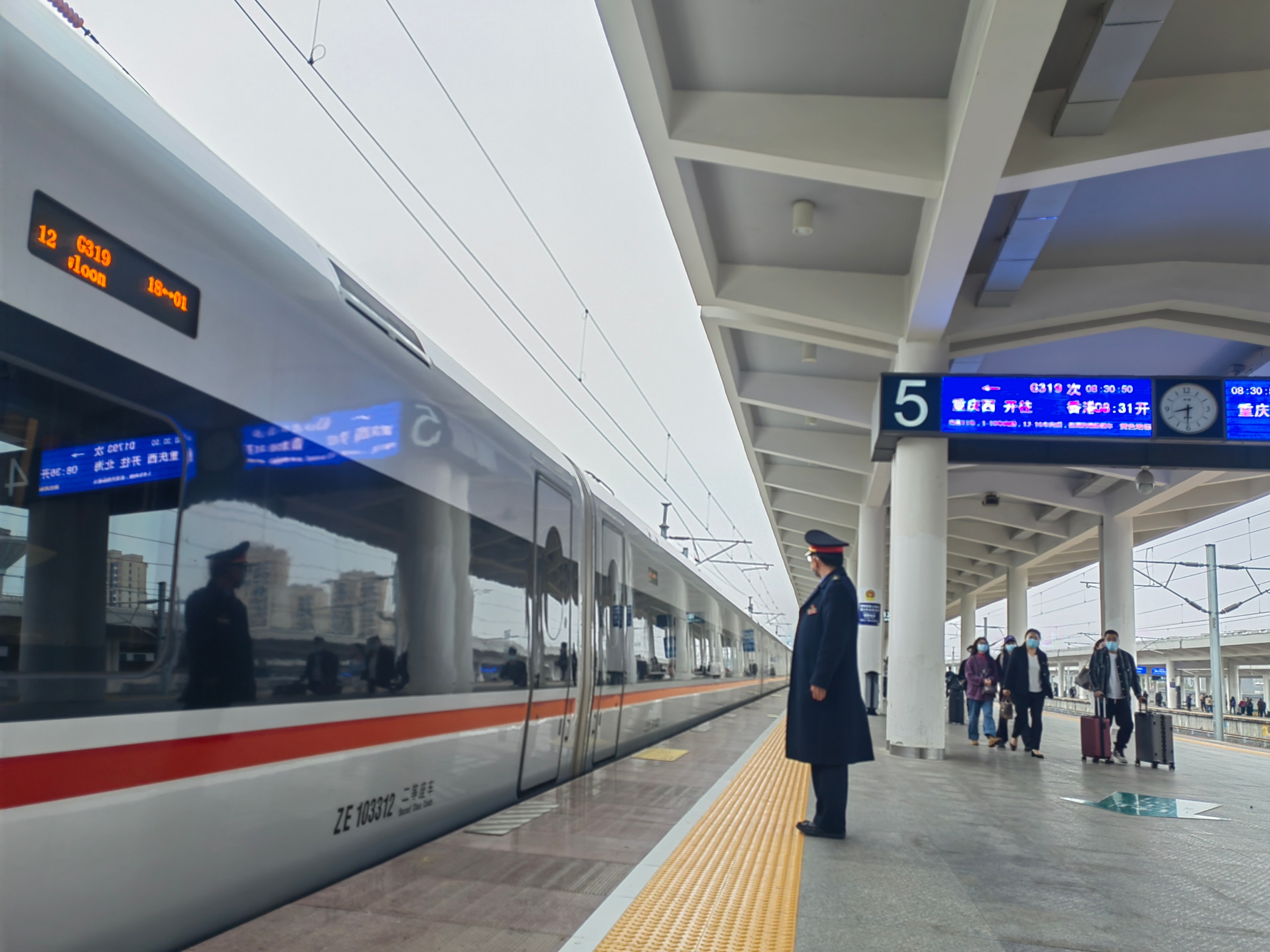 记者今天(4月1日)上午在渝贵铁路遵义站看到,347名旅客乘坐G319次列车出发,前往香港西九龙方向,标志着香港西九龙至重庆西间的跨境高铁列车正式恢复开行。