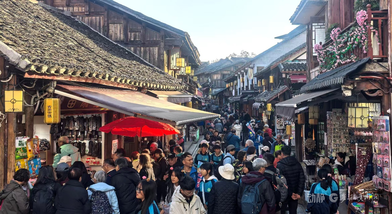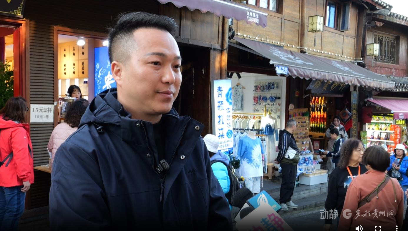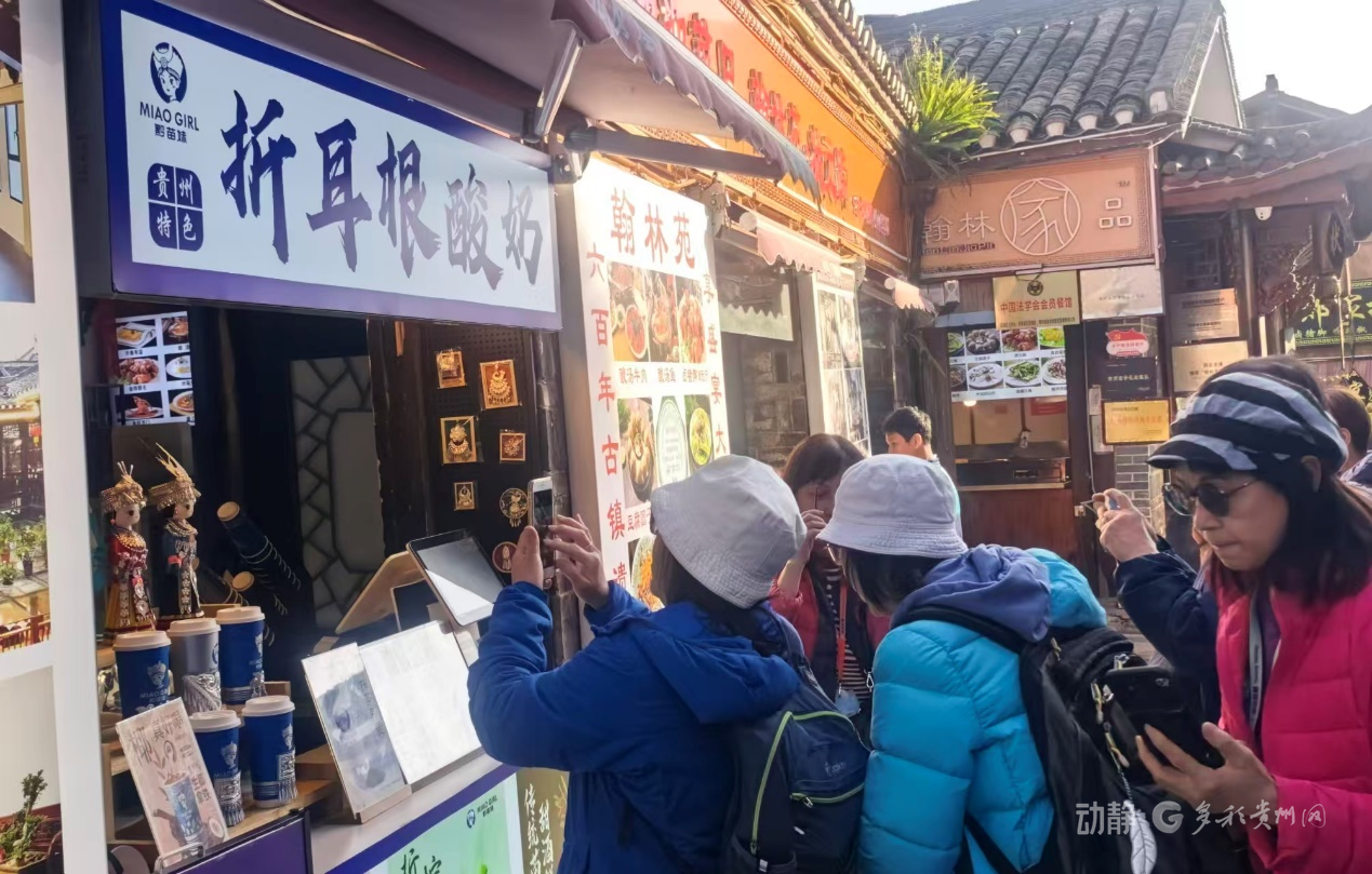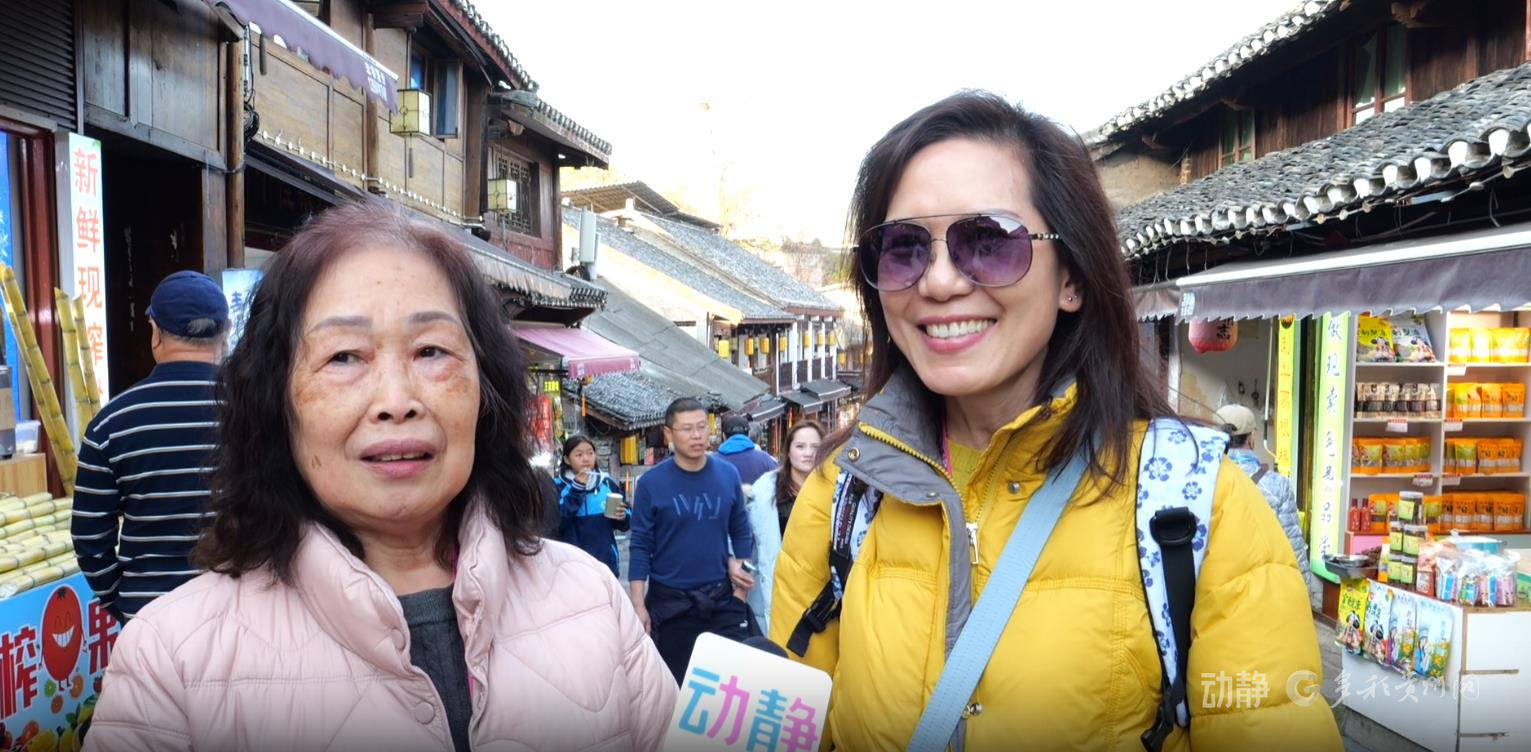 在贵阳青岩古镇,香港游客黎女士和同伴一路逛吃逛吃,直呼小镇好漂亮,非常喜欢。她对花江峡谷大桥心仪已久,早在一个多月前就报名了此次旅行团。