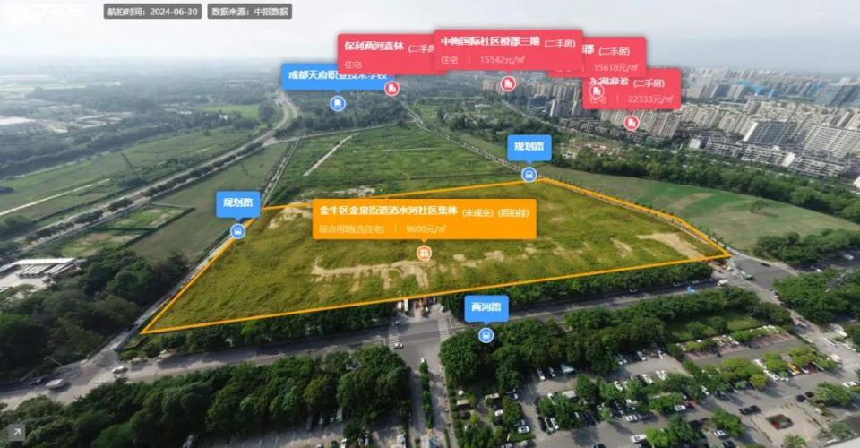 另一宗起始总价超过10亿元的是编号为JN08(09/070102):2024-023的金牛区金泉街道清水河社区集体建设用地,起始总价13.22亿元,成交价13.22亿元,竞得人为成都栖岸置业有限公司。